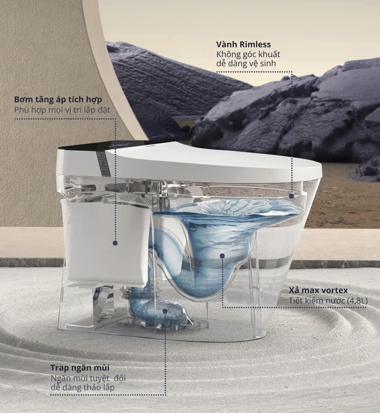 - Công nghệ Max vortex : Xả sạch mọi vết bẩn tại mọi góc cạnh trong lòng bàn cầu với lực hút cực mạnh.