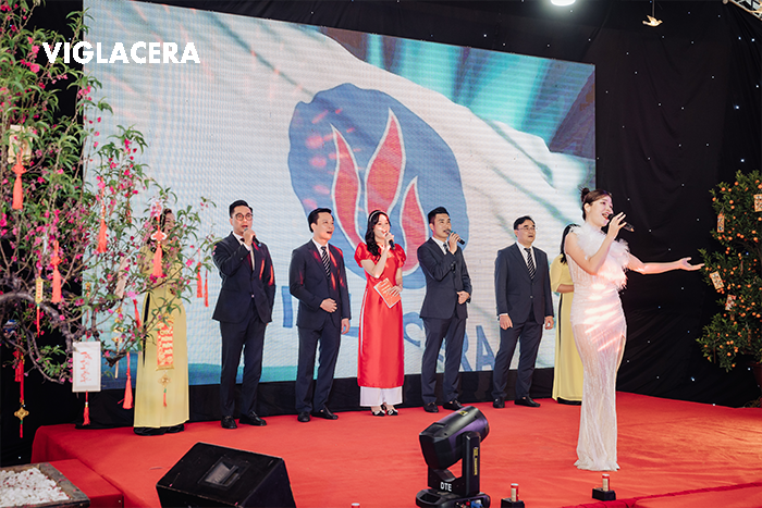 Chương trình “Chào Xuân 2023 – Rộn Ràng Đón lộc” chính thức bắt đầu bằng tiết mục Trống hội khai xuân đầy hào hùng và mạnh mẽ như một sự hứa hẹn về hoạt động kinh doanh phát triến thắng lợi trong năm 2023. Tiếp nối với bài hát truyền thống của công ty "Viglacera niềm tin và tình yêu" khẳng định sự gắn bó bền chặt của nhân viên Viglacera với thương hiệu, công ty và các NPP.